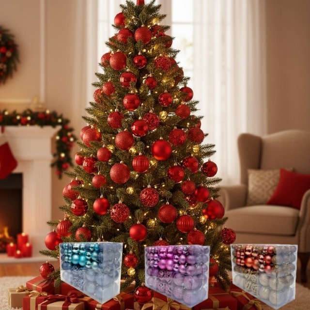 豪華100個セット.。クリスマスのオーナメントです。 ご自宅は勿論、店舗やオフィスなど、賑やかに飾り付けをすることでより存在感を増します。 キラキラ光るものは元々『魔よけ』としての意味も込められていたそうです。 イルミネーションとの相性も抜群で、光が美しく反射して幻想的なムードを生み出します。 【サイズ】 ・約6cm×32個 ・約4cm×36個 ・約3cm×32個 【カラーバリエーション】 ・レッド、ピンク、ゴールド、ブルー 【材質】 ・プラスチック 【注意事項について】 ・本商品は屋内用です。屋外での使用は劣化の原因になります。 ・商品の特性上、表面に細かなキズなどが入っていることがあります。 ・ラメが落ちて 多少剥離しますので、あらかじめご了承下さい。 ・モニター環境によっては、画像の色と現物が異なって見える場合があります。 予めご了承ください。