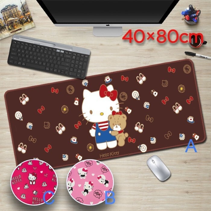 大判 デスクマット 40×80cm キティ ネコ キャラクター ゲーミングマウスパッド デスクインテリア テレワーク