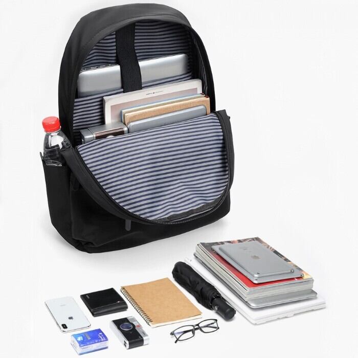 シンプルなデザインと実用性を兼ね備えた、大人のためのブラックバックパック。通勤・通学はもちろん、出張や旅行まで幅広く活躍します。