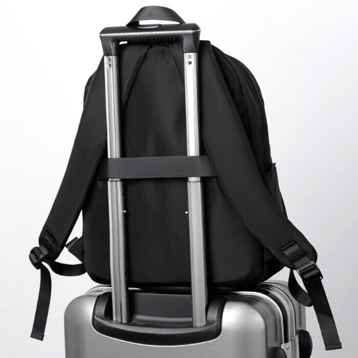 【撥水・多収納】ビジネス対応 シンプルブラック バックパック PC収納・キャリーオン機能付き 通勤 通学 出張用リュック