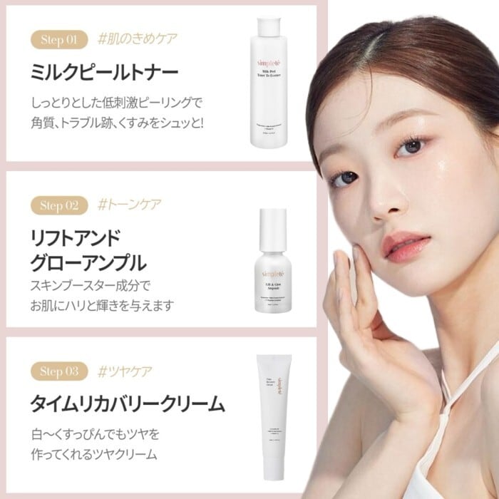 4stepフルルーティン Simplete シンプレ 4セット ミルクピール エッセンス 乳液 韓国スキンケア 角質ケア 保湿 トナー エッセンス ツヤ肌 美白 くすみ 毛穴 化粧水 敏感肌 ミスト美容液 韓国コスメ スキンケア 時短美肌