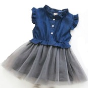 ワンピース チュールスカート キッズ 女の子 シンプル 夏 韓国子供服 ブルー