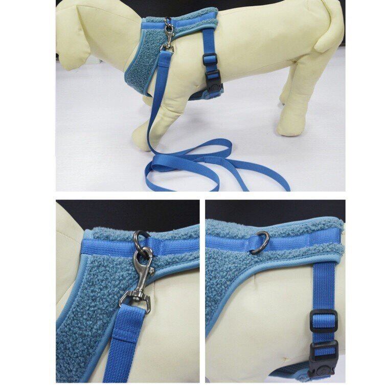 犬 ハーネス リード ロック機能 介護 ステップ 首輪 ペット服 ボア もこもこ 秋 冬 安全 パープル ブルー 送料無料 クリスマス プレゼント お正月 かわいい