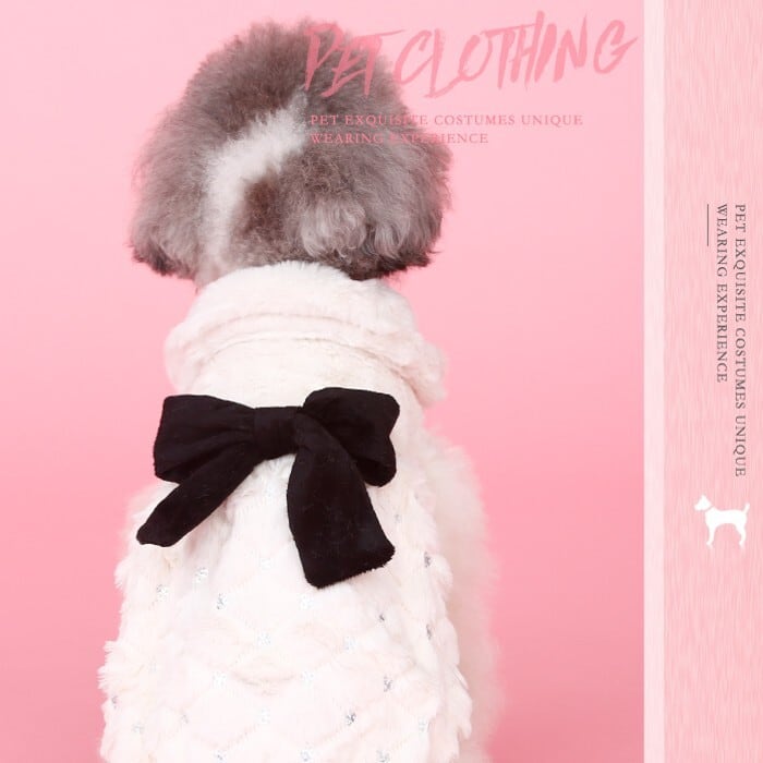 ペットウェア ふわふわ スパンコール キラキラ かわいい リボン ベスト 襟付き ホワイト 犬服 猫服 超小型犬 小型犬 XS S