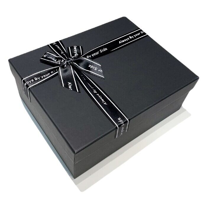 ブラック&ホワイトリボン付きのおしゃれなギフトボックスです。