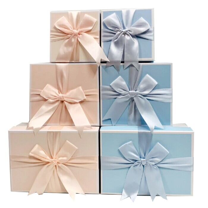 ギフトボックス 小 可愛い ピンク ブルー シンプル リボン付き 贈り物 包装 プレゼント 箱 ギフト ラッピング パッキング