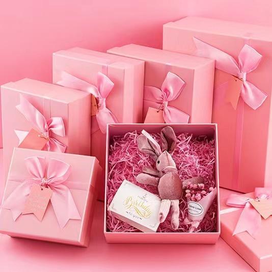ギフトボックス6号 7号 可愛い ピンク 長方形 シンプル ボン付き 収納 包装 パッケージ ギフト ラッピング 箱 プレゼント 贈り物 多用ケース