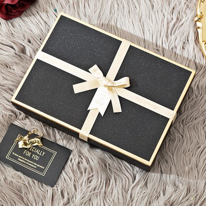 ギフトボックス ブラック ラメ オシャレ ゴールド リボン付き 包装 贈り物 ギフト 高級感