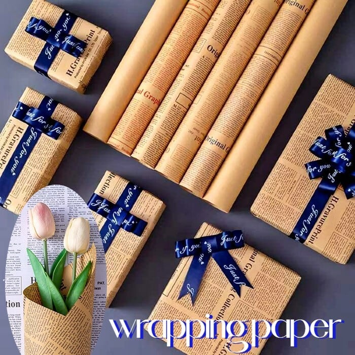 包装紙 新聞紙 英字 ラッピング用品 ラッピングペーパー 紙 ギフトラッピング DIY 包装資材 梱包材 贈り物 プレゼント包装 3色 両面印刷 45枚入