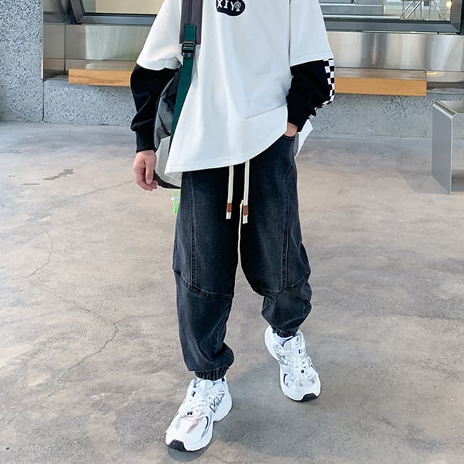 子供服 長ズボン 男の子 裏起毛 ロング丈 ボトムス ジーンズ カジュアル パンツ 韓国 黒 140 150 160 冬物 暖かい