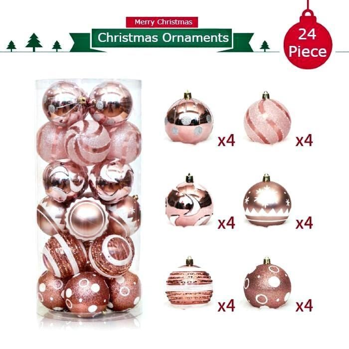 クリスマス オーナメント ボール 豪華 24ピース 6cm ラメ 柄 デザインボール お洒落 シルバー ピンクゴールド