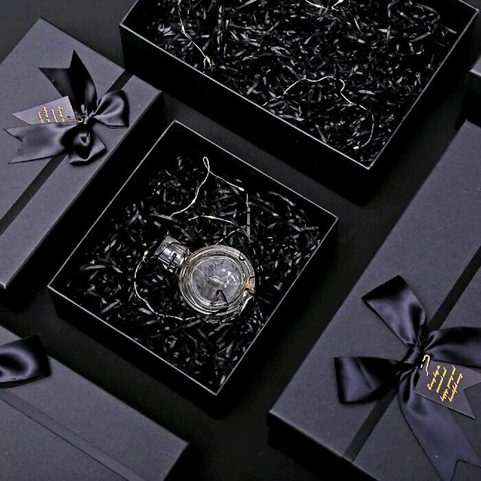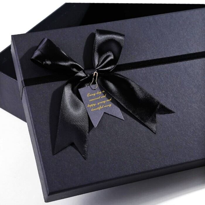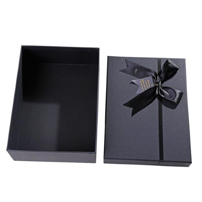 ギフトボックス ギフト箱 アクセサリーケース 中 シンプル お洒落 リボン付き スタイリッシュ プレゼント ボックス 無地 ブラック 包装 パッケージ