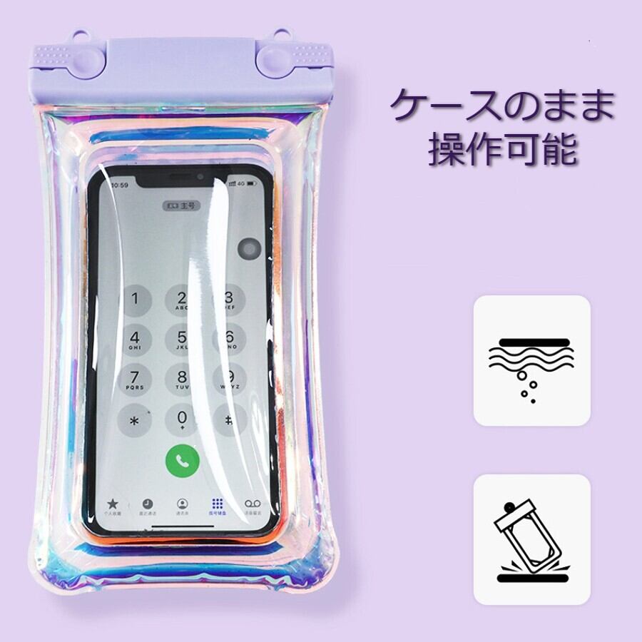 防水ケース スマホケース 携帯防水ケース 携帯防水カバー 浮く ストラップ 首掛け 夏 海 プール 水遊び アウトドア オーロラ ピンク パープル ブラック イエロー